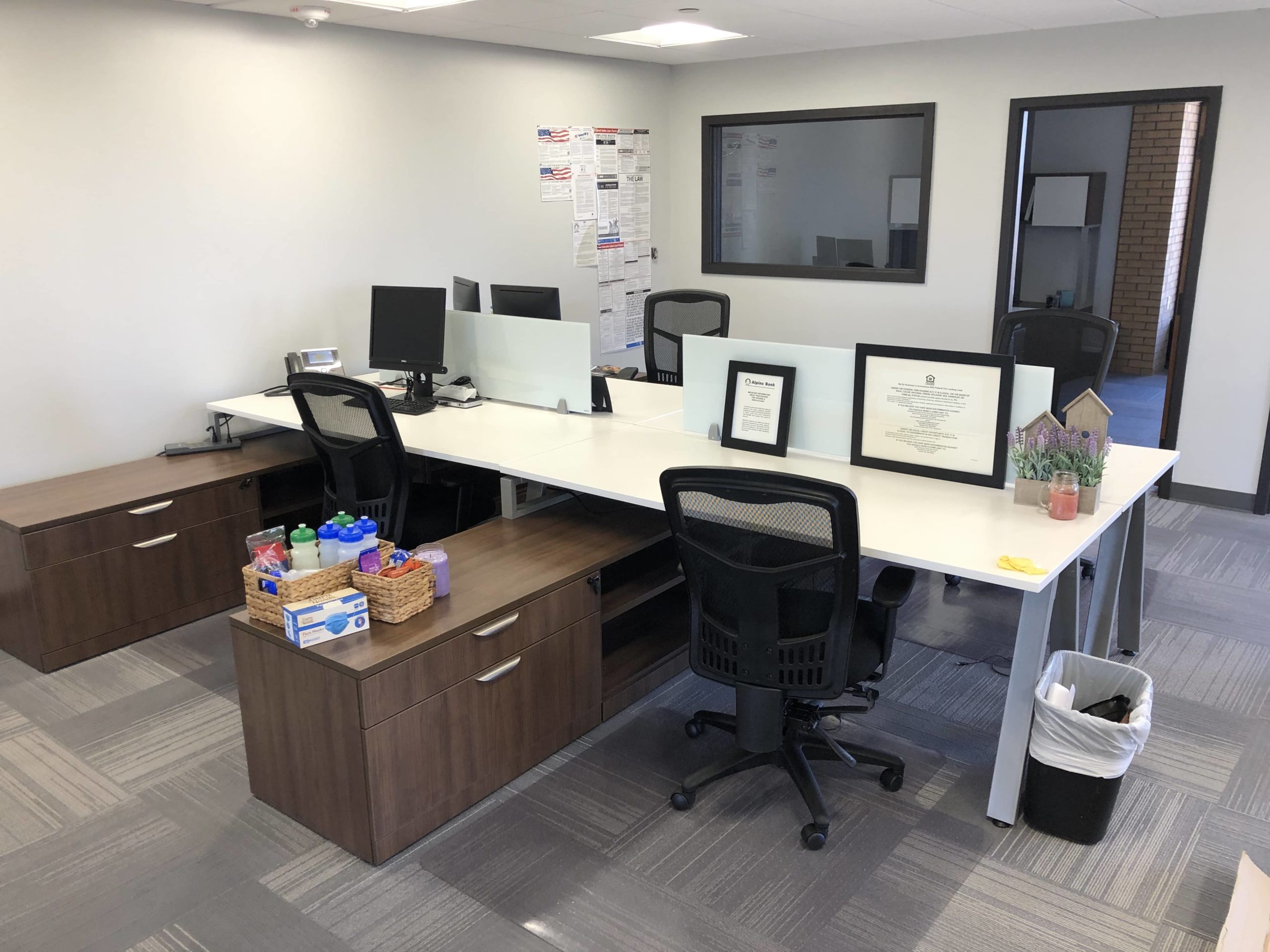 Denver Office Furnitures partnered with Alpine Bank to complete a temporary office until their new Fort Collins branch is complete. We used multiple stylish Performance Office Furniture products to complete the project.